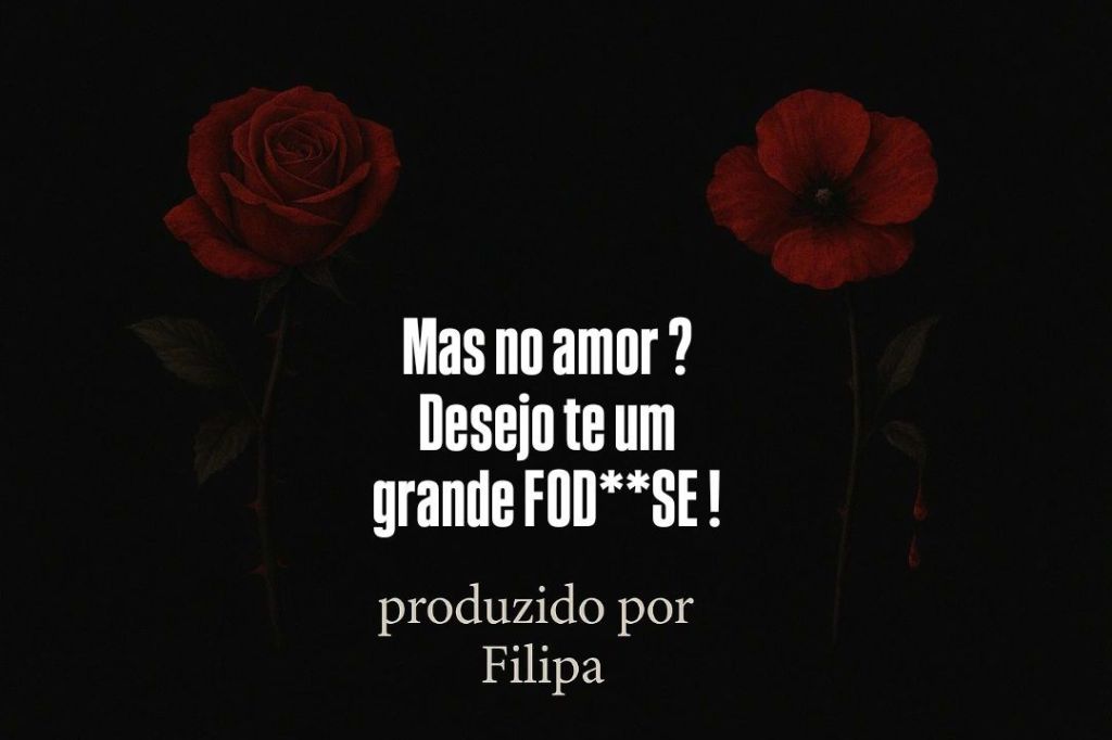 Não me leves a mal, não vim fingir que te desejo um mundo cheio de coisas lindas, e que espero que encontres a miúda dos teus sonhos. Isto não se trata de termos acabado, não se trata de seguirmos caminhos diferentes, não se trata de teres outras opções ou até outra pessoa. Não se trata de tudo o que ouvi antes de ires, porque também em nada tem haver com isso. Eu só não desejo uma história das que nos fazem sorrir à toa, porque nunca foste capaz de fazer ninguém sorrir. Até pode parecer uma coisa de ex amargurada, alguém que não seguiu em frente, mas tu sabes, que nós sabemos muito bem que cicatrizes que eu carrego dentro do meu peito começaram a surgir muito antes do acabou. O problema não foi a tua desistência de nós, foi a tua insistência sabendo que não me querias a mim. As minhas marcas surgiram do teu comportamento, das tuas atitudes, do teu fingimento. Quando foi fácil fingir que me amavas, mas desligavas o telefone à sexta para voltares com uma desculpa ao sábado. Quando vinhas com mentiras patéticas e que eu fingia acreditar por ter medo de te perder. As minhas marcas foram surgindo todas as vezes que os nossos planos eram substituídos pelos passatempos dos teus amigos que eram melhores, mas que eu tinha de ficar em casa! (Quem sabe tu viesses.. ou não.) As minhas marcas surgiram quando várias vezes disseste que não tinhas a certeza que eu era quem querias. As minhas marcas surgiram quando julgavas os meus sonhos mas era dos teus somente que se corria atrás. As minhas marcas surgiram quando a rotina ficava chata de suportar para ti e não havia ninguém para aturar o teu mau humor e as tuas manias e ai era quando tu vinhas .. ai era quando tu ligavas , quando tu te lembravas. Porque precisavas de mim! Até te cansares de novo, porque só precisavas por um tempo. É por isso que neste momento não me vejo a dizer que te quero ver a dar certo com alguém, nem vou torcer para que tal aconteça, porque realmente já nem espero nada disso. Já não espero nada. Não te iludas, nem penses que é ciúmes, simplesmente não mereces reciprocidade, porque ainda te falta aprender o que isso significa. Longe de mim desejar-te mal! Eu desejo sucesso, desejo que termines os teus objetivos pessoais, desejo que não te falte dinheiro, não te falte saúde, nem festas e desejo uma vida cercada das pessoas que sempre pusestes à minha frente mas que nunca nos aceitaram, mas no amor ? .. Um grande FOD**SE ! No amor eu desejo-te tudo o que me fizeste passar. Todas as noites em claro a tentar perceber o que poderia ser melhor do que estar comigo. Os dias que eu chorei até não ter mais forças, a acreditar até que as minhas lágrimas iriam secar. Todas as chamadas que eu fiz, as que me desligavas na cara, as que não atendias e as que nunca foram retornadas. Todas as mensagens que até hoje estão sem resposta. Todas as declarações que fizeste da boca para fora. E as frases feitas e decoradas que só foram criando expectativas sobre nós. Até o amo-te que dizias mas não sentias. Por várias vezes pedi-te jogo limpo e era sempre ” confia em mim “. Confiei.. E parti a cara três mil vezes.! As promessas que fizeste e nunca tentaste cumprir. E sabes aqueles dias e horas que eu dizia estou cansada e a ir-me embora e tu me davas a volta para outra chance , para teu benefício, para teu ganho, para teres alguém e não ficares carente, quando sabias que eu tinha medo de te perder ? É só isso que eu te desejo. Não é praga! Não é vingança! Não é raiva, não é mágoa, ou sei lá o que lhe quiseres chamar. É JUSTIÇA! Não quero que sofras mais do que me fizeste sofrer, mas também não é correto que esbarres com mais alguém que seja capaz de fazer tudo por ti e tudo o que tu nunca fizeste, porque não se devia receber amores grandes ao sermos demasiado pequenos. Eu quero que descubras como dói. O que é teres o coração despedaçado, estraçalhado e dilacerado por alguém que jurou cuidar de ti e o que é tentar achar um remédio só para amenizar essa dor que surge da alma. Quero que saibas o que é implorar e mendigar um pouco de amor, carinho, respeito, consideração, atenção. Só um pouco.. Que saibas qual é o sentimento de te fazerem ciúmes só para te divertir, te afastarem dos teus sonhos só para te destruir, que te diga o que me dizias só para magoar e que também se ria por estares em casa a espera que volte, enquanto ela se diverte com as amigas e sei lá mais quem. Só quero que tu passes pelo que eu passei, igualzinho, só para saberes como eu me sentia. Eu não tenho culpa nem poder das tuas escolhas, mas agora eu também já só desejo que colhas tudo aquilo que tu plantaste.